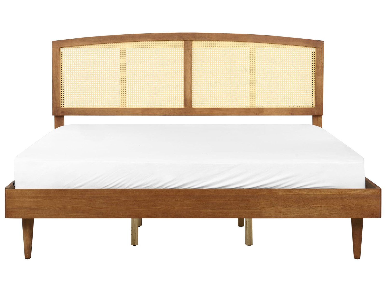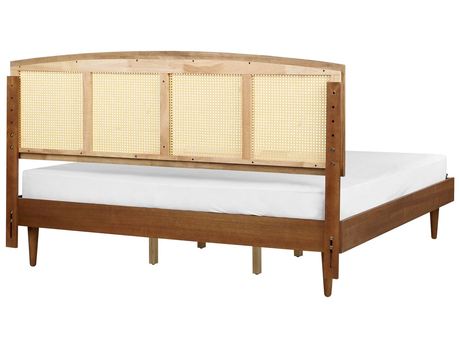 This bed frame is going to guarantee you a good night sleep, while also refreshing the look of your bedroom. Crafted out of high-quality rubberwood, the bed is very durable, sturdy and low maintenance. It comes with an attention drawing headboard, adorned with a Viennese braid pattern. What is more, the headboard is adjustable, so you can quickly change its height. Due to included LED stripes, you can illuminate your bedroom with a strong glow.