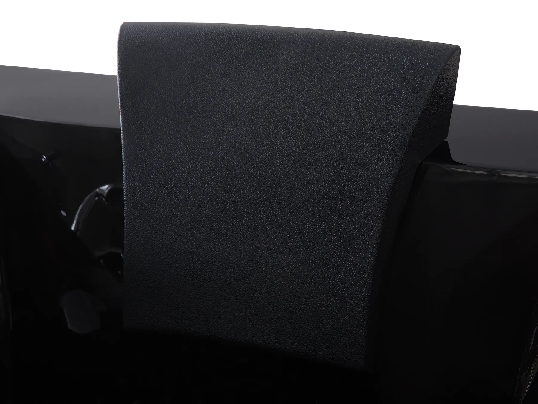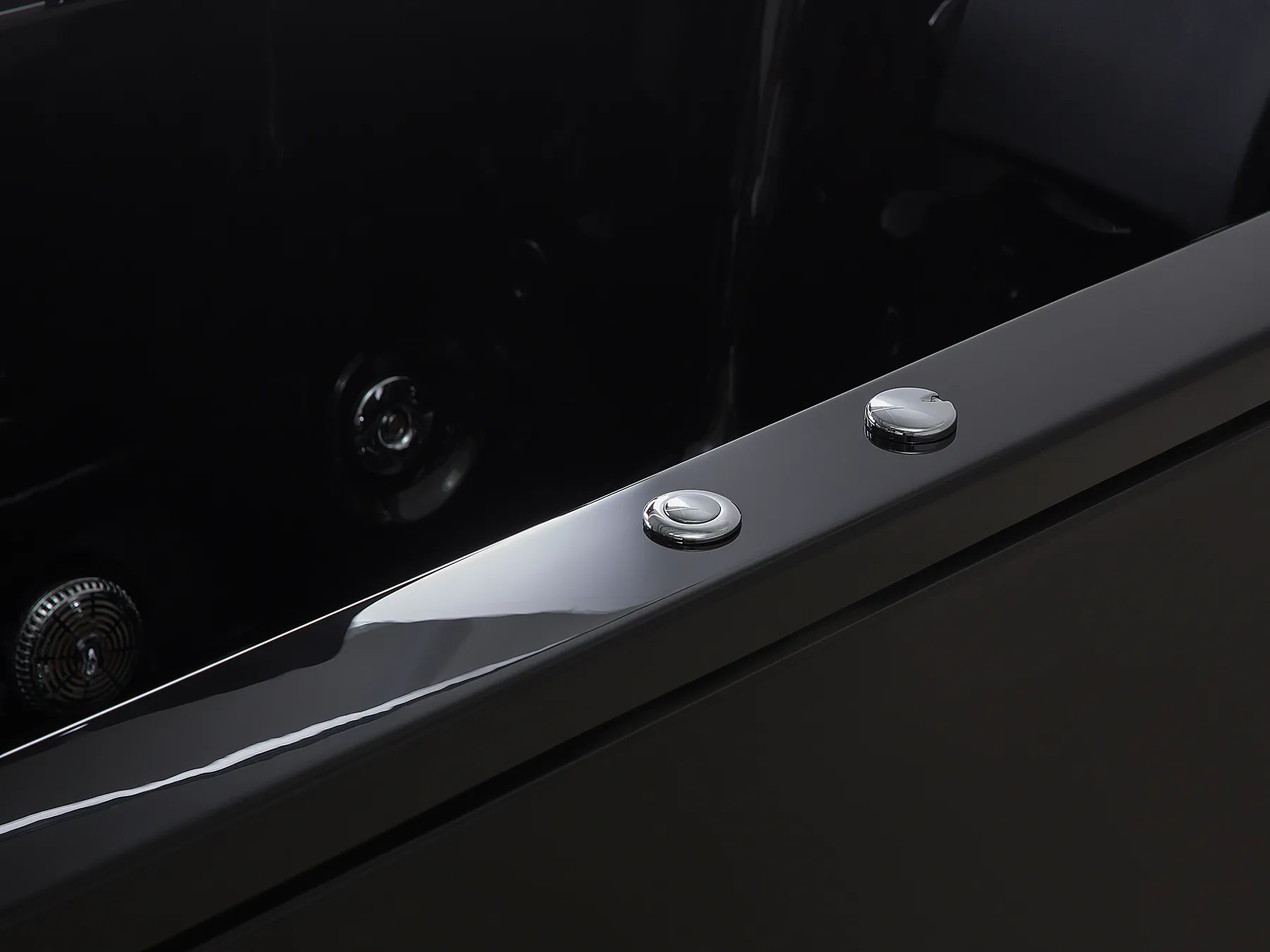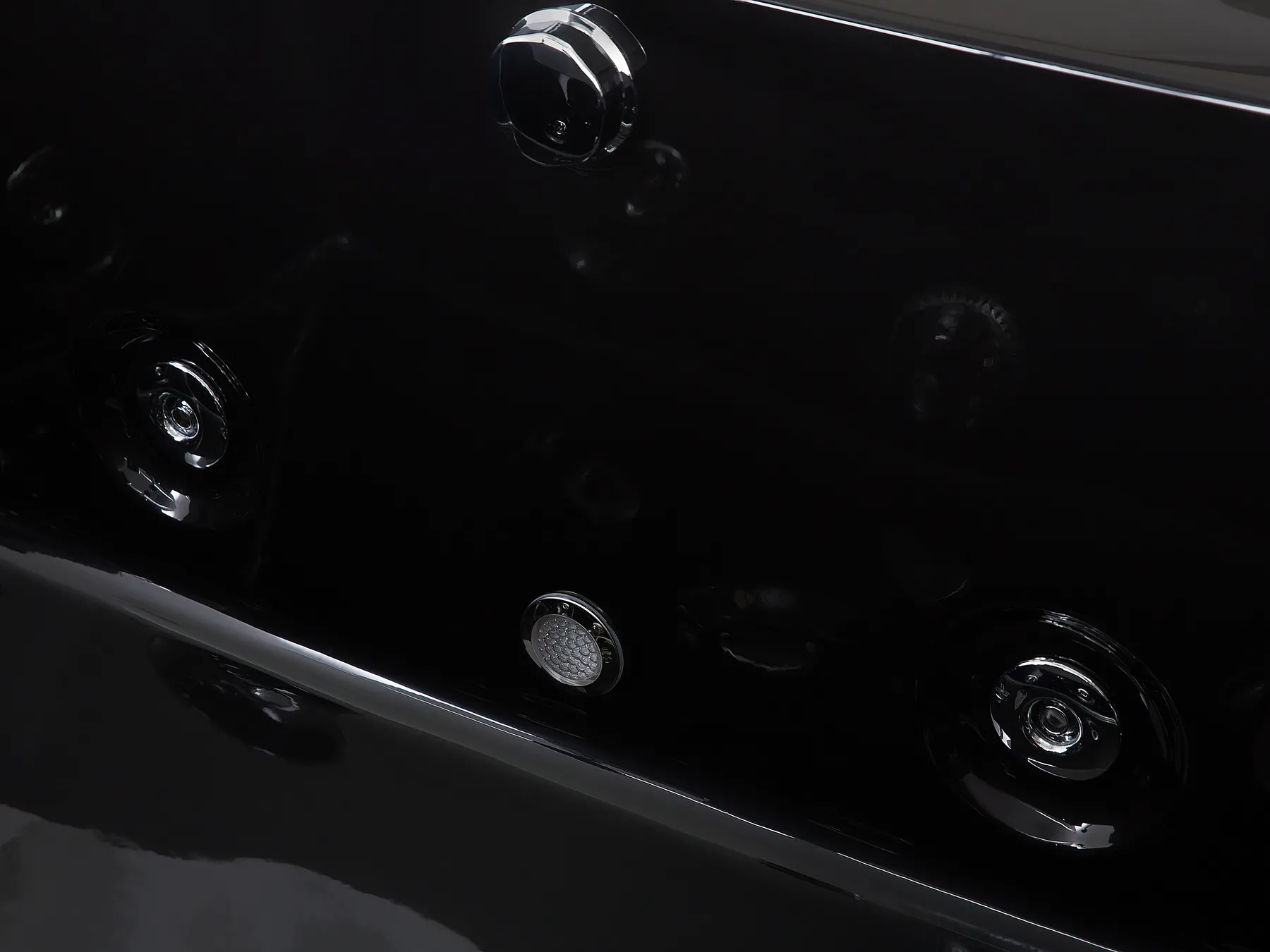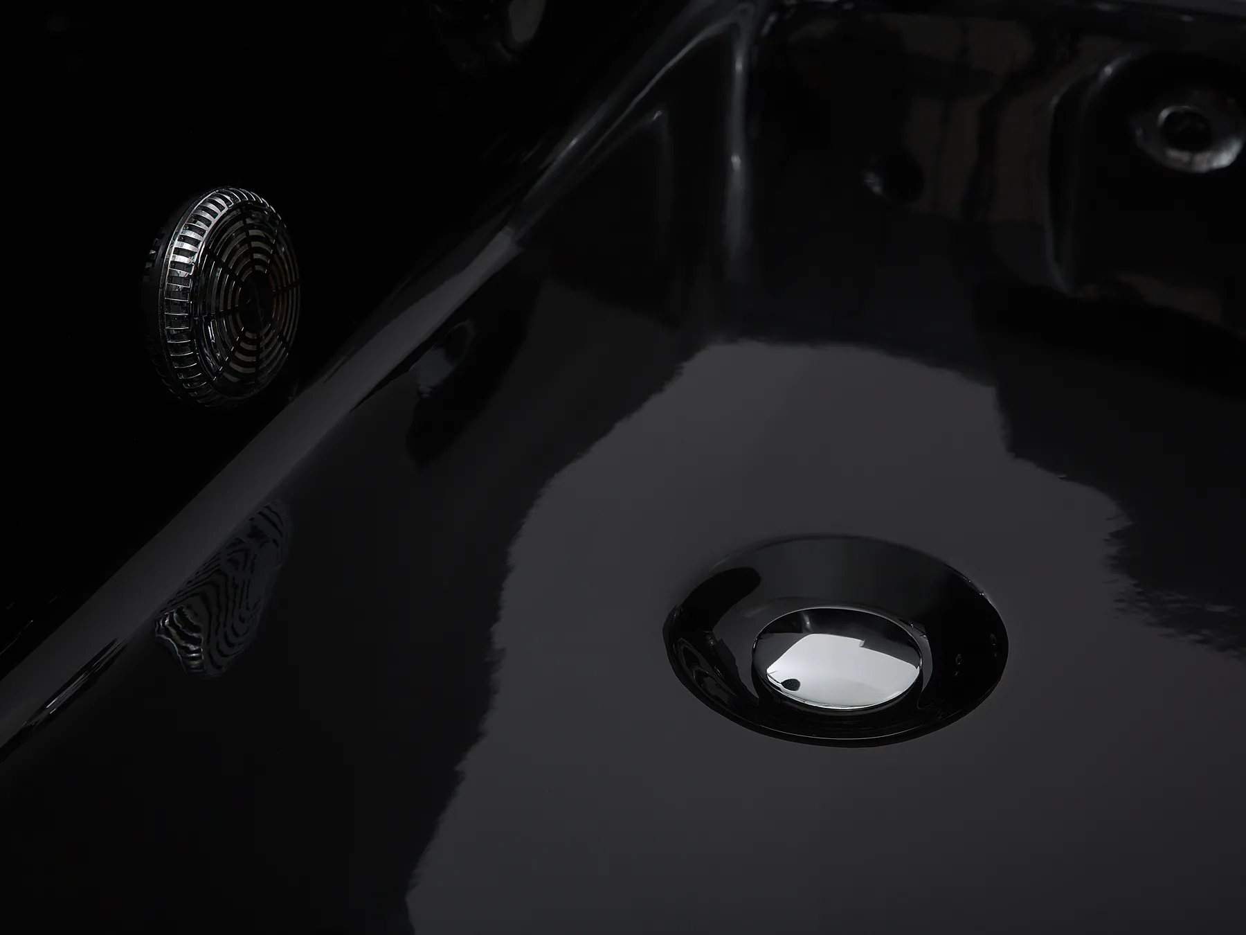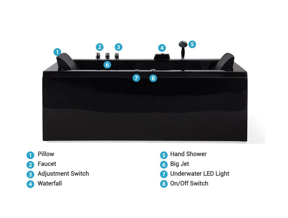 A rectangular bathtub that combines a classic look with the functionality of a bath with massage. Gentle massage provided by jet streams is additionally complemented by underwater lighting, which creates a unique atmosphere. The simple design will add a unique style to your bathroom. The bathtub features elegant chromed fittings including a waterfall tap and two padded headrests in a classic black colour. Thanks to its compact size the tub will work great in small bathrooms. The construction is reinforced with fibreglass for long-lasting durability.