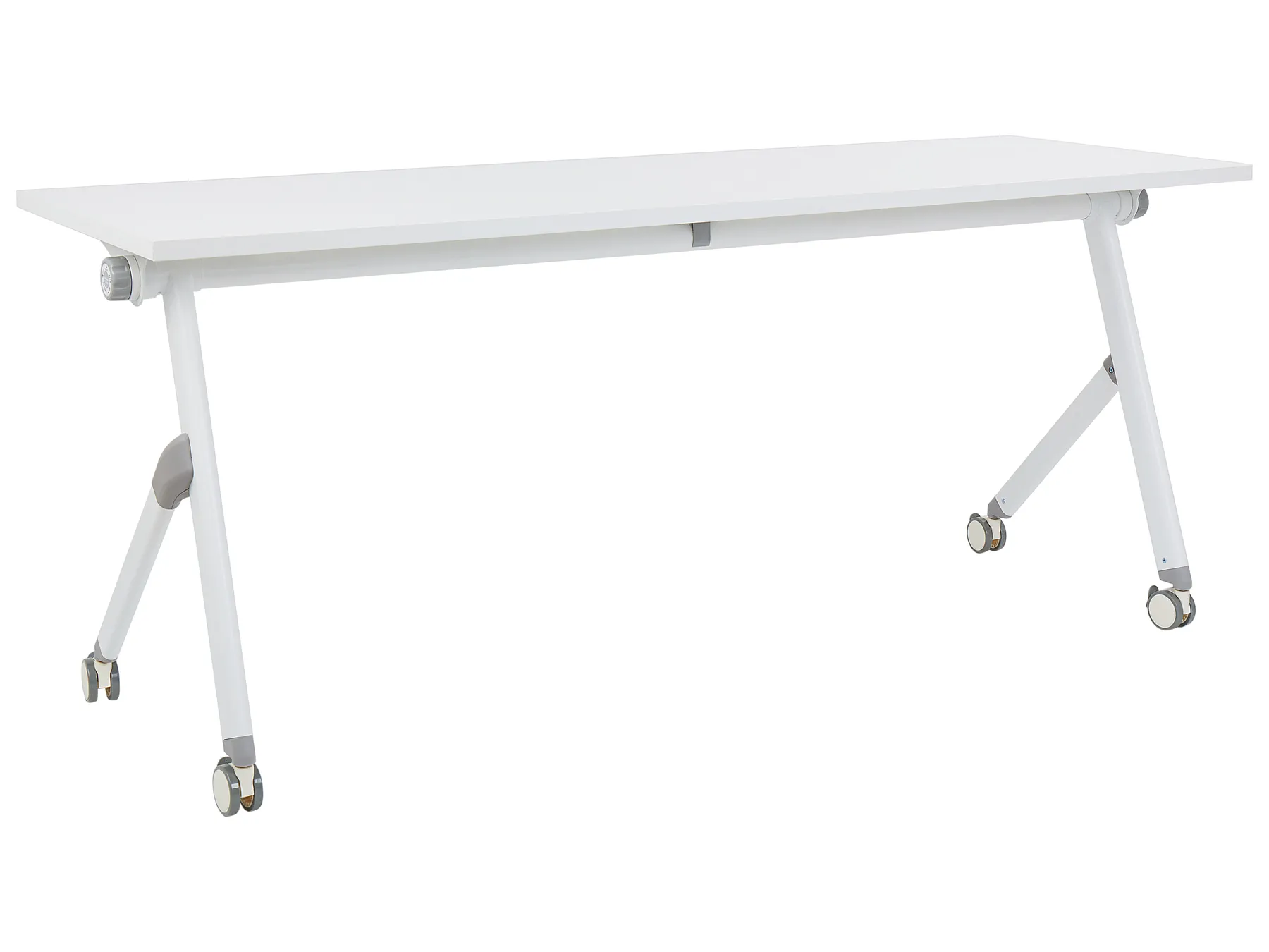 Discover the perfect blend of functionality and mobility, and elevate your office space with this folding desk. Featuring a convenient foldable top, this desk can be effortlessly stowed away when not in use, making it ideal for compact spaces. Equipped with lockable casters, it offers stability and versatility, allowing you to easily move and secure it as needed. Ideal for home offices as well as other work spaces, this desk ensures a practical and stylish workspace solution.