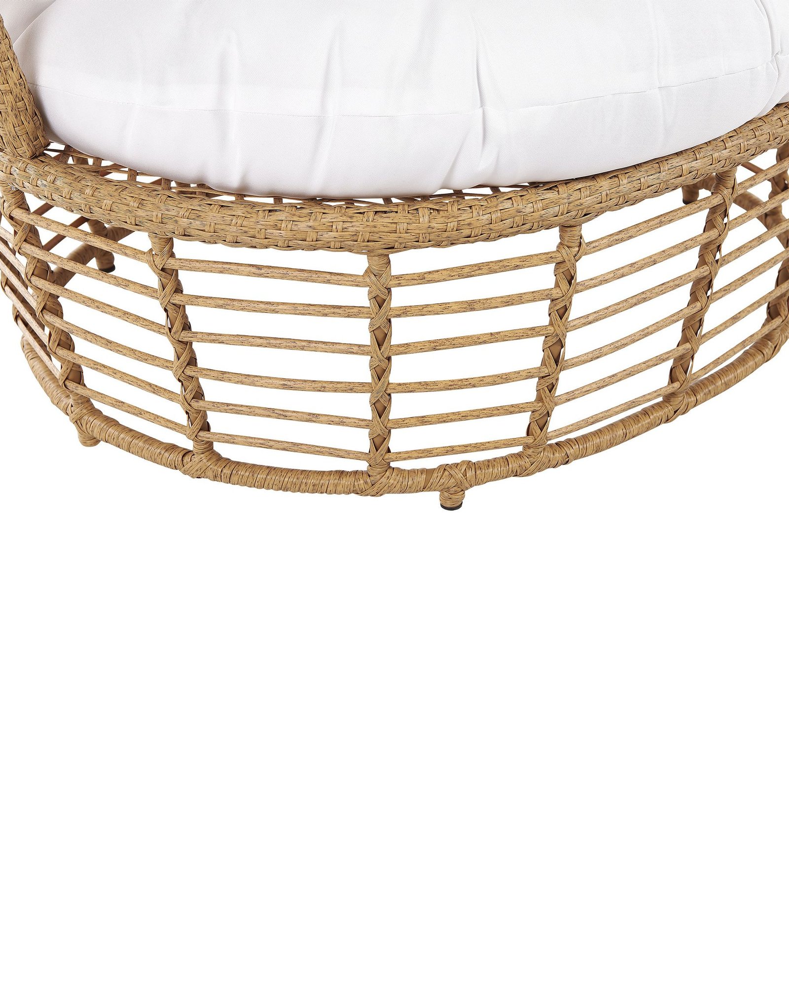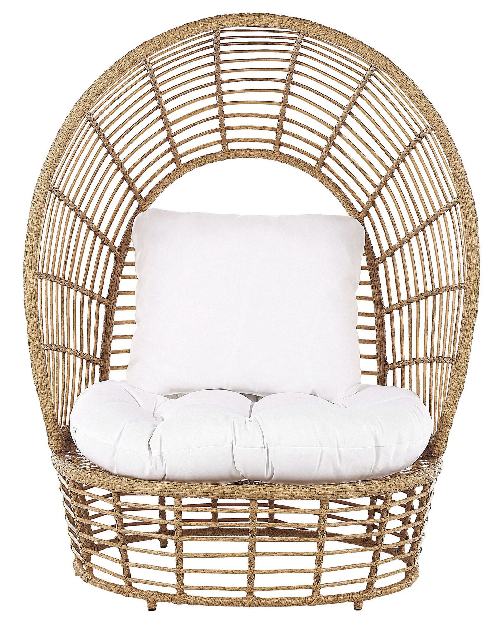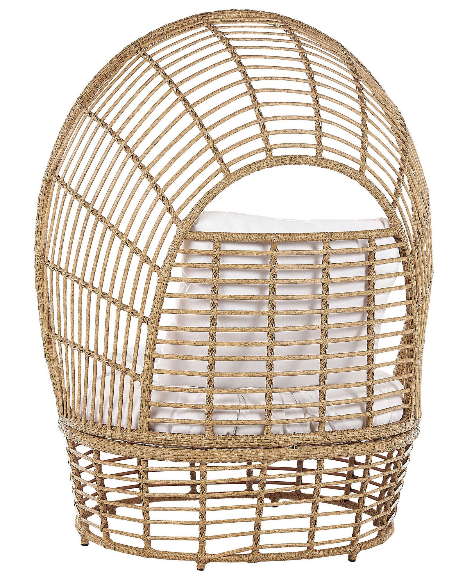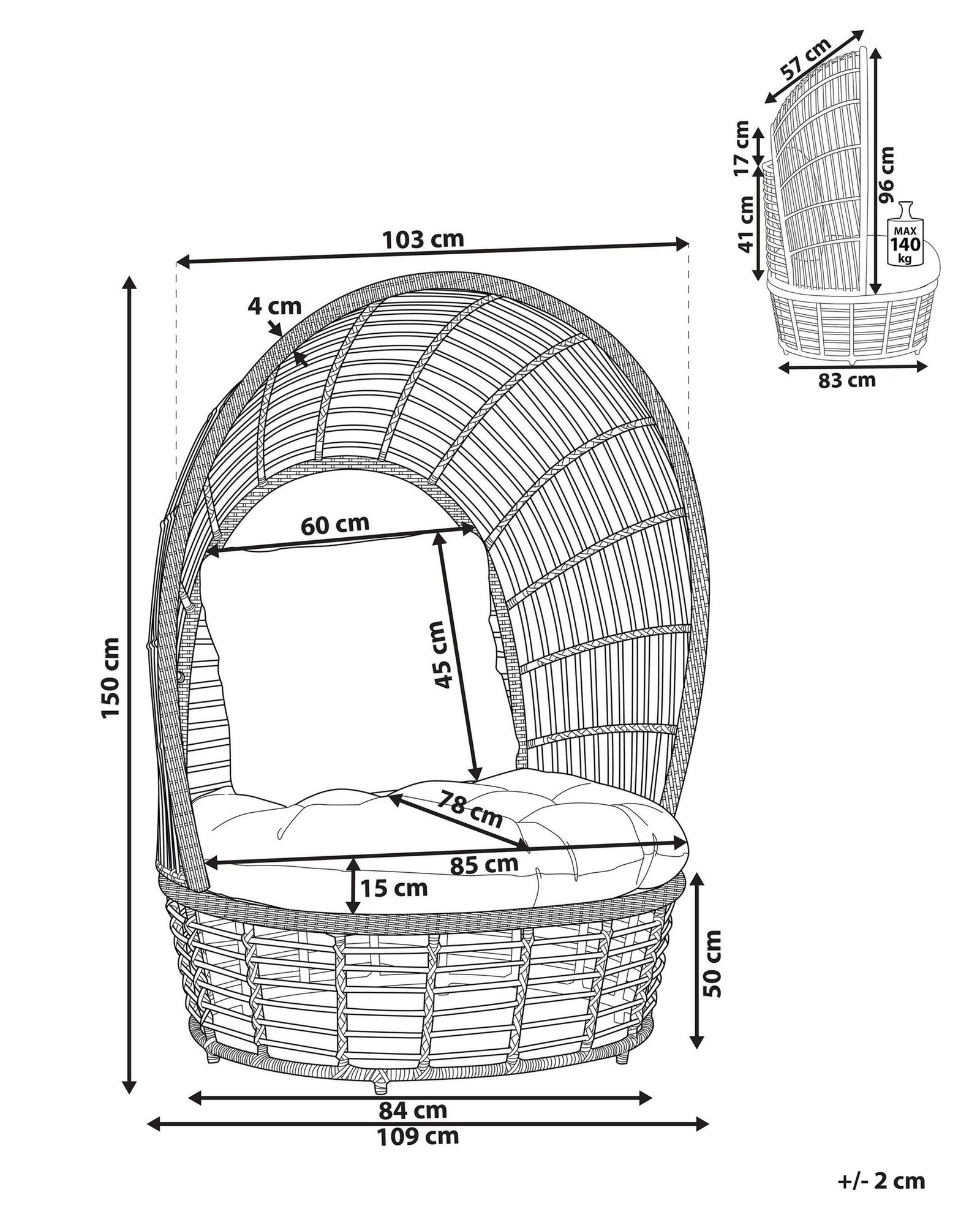 This basket chair will be a stylish addition to your home. It can serve as a great alternative to an armchair in the living room, or create a perfect place to relax after a hard day at work. Fitted with a comfortable sitting cushion, it provides stable back support thanks to a very high backrest. Metal frame construction is covered with durable PE rattan, which makes the piece long-lasting.