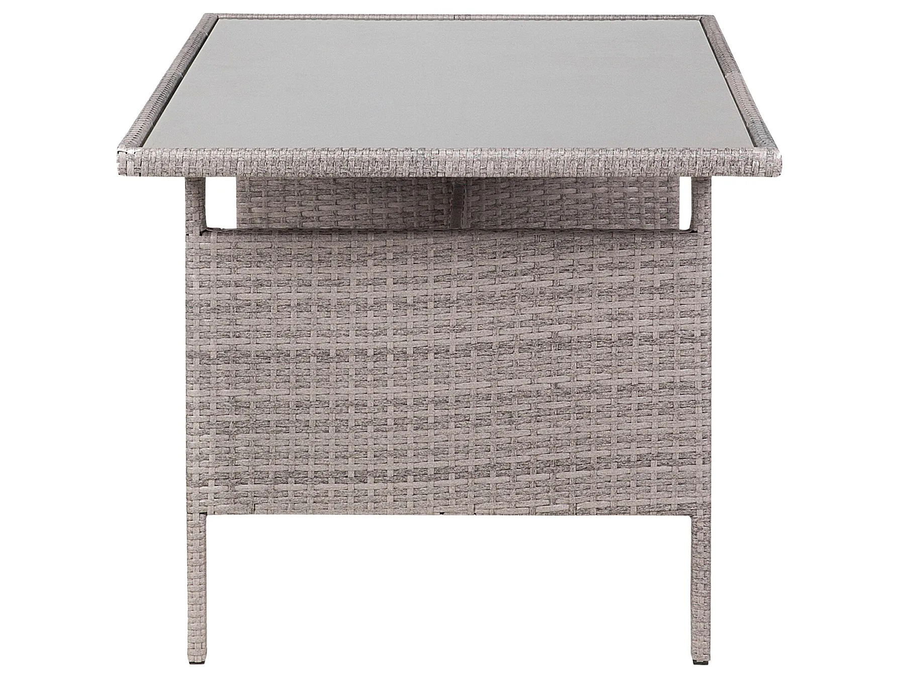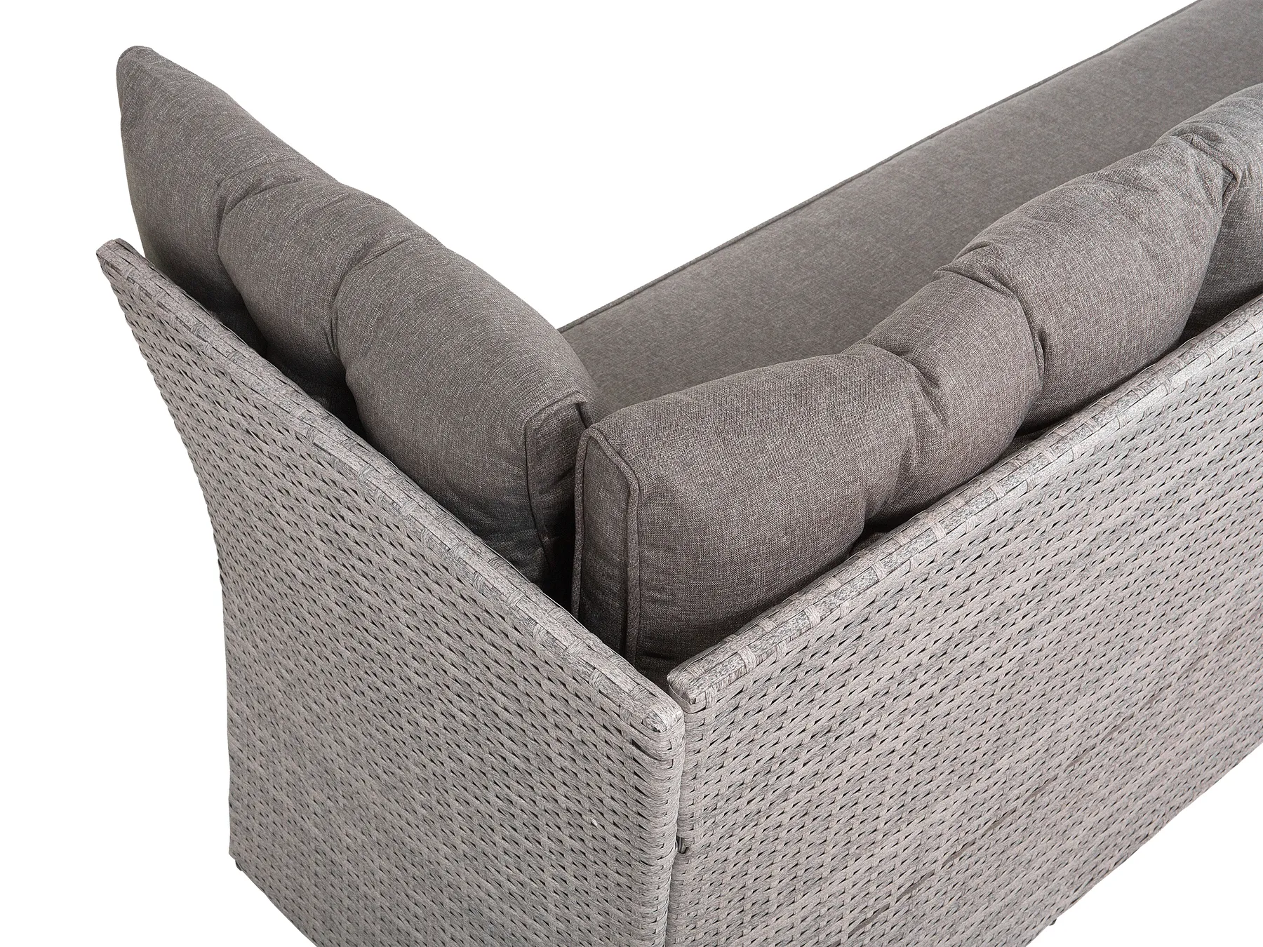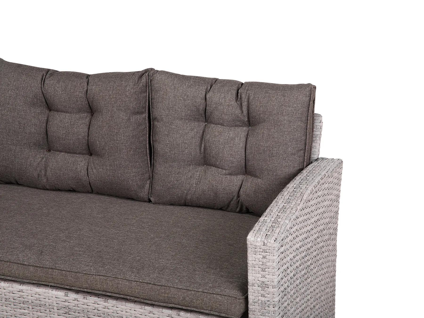 Suitable match to a traditional or modern outdoor space this 3-piece modular set offers comfortable sitting for up to 8 people. Featuring PE rattan on a robust steel frame so that the furniture lasts for many years of use. Completed with a tempered glass top table provides ample space for outdoor dining and entertaining.