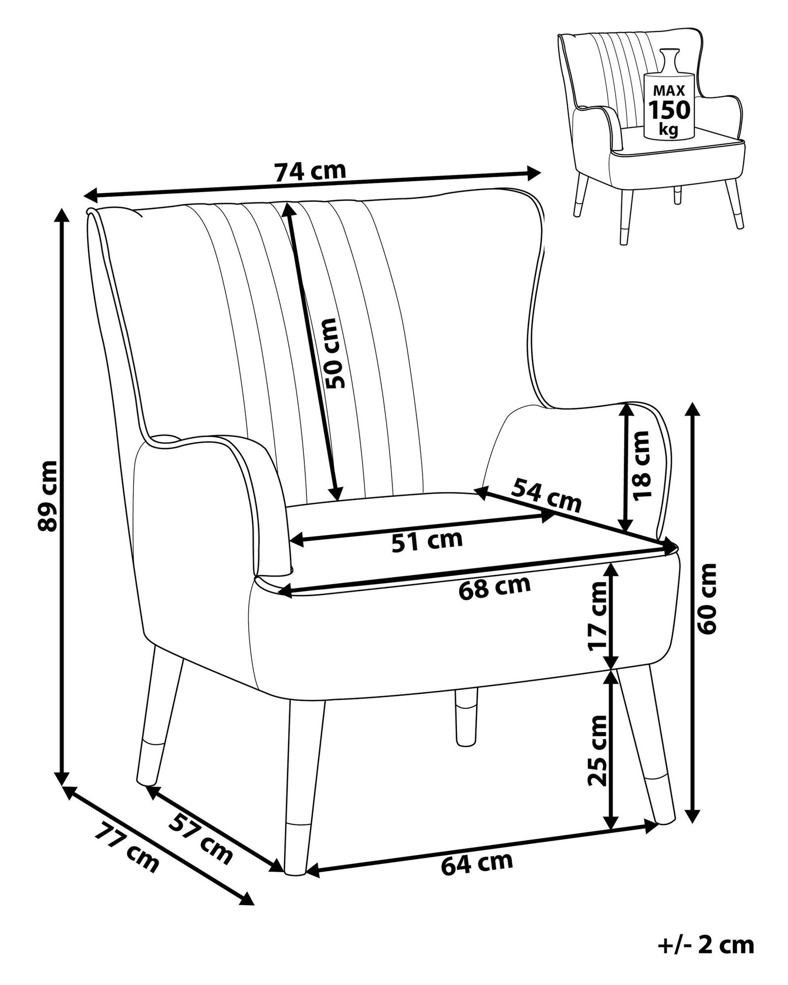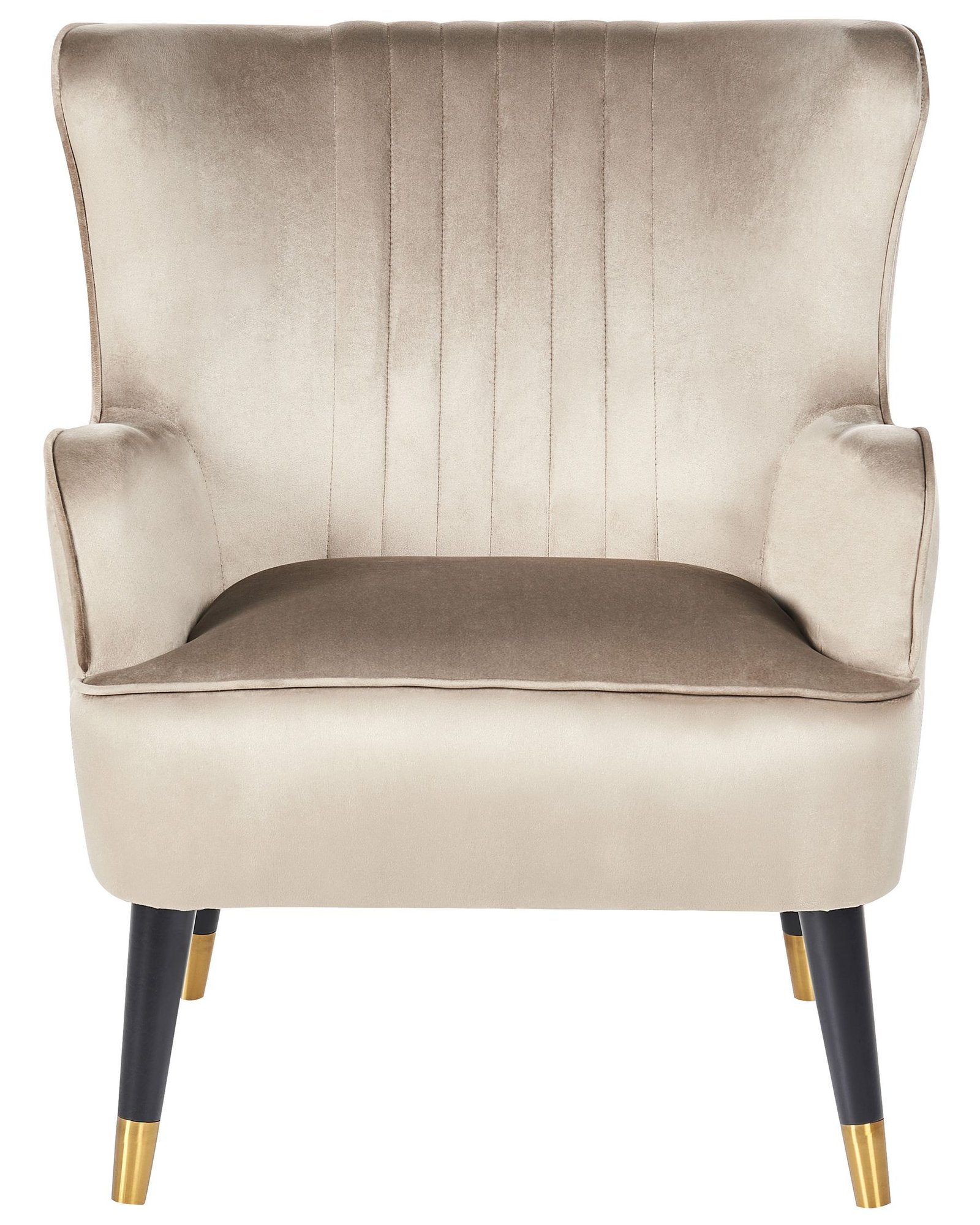 Give your interior a vintage feel with this stylish wingback chair. Upholstered in soft-to-the-touch, easy-care velvet fabric in beige, the armchair features a thickly padded seat for the utmost comfort. The wingback shape and sloped arms add a chic look to the piece, making it a perfect addition to spaces designed in a glamour and traditional style.
