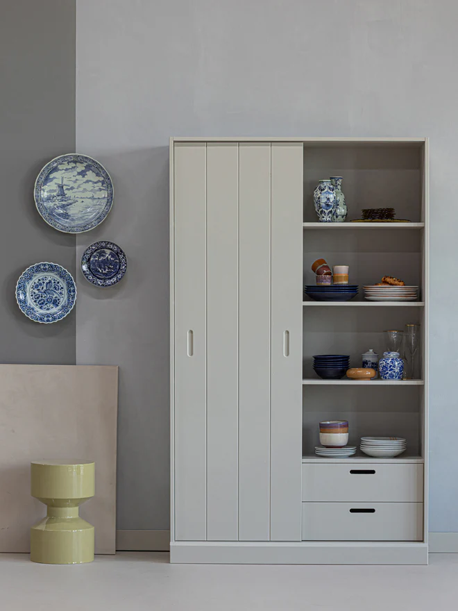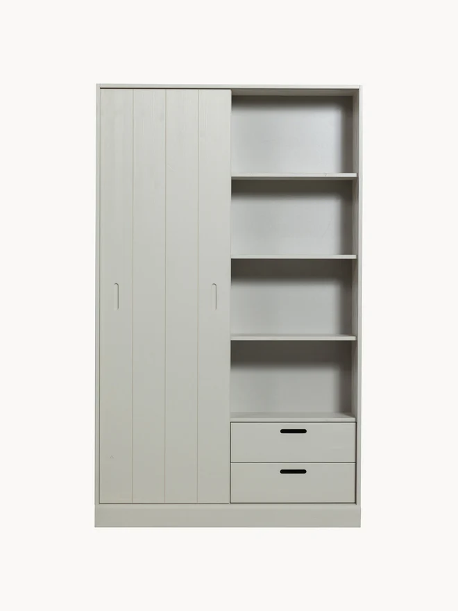 The drawers and doors are equipped with a soft-close mechanism for silent closing.