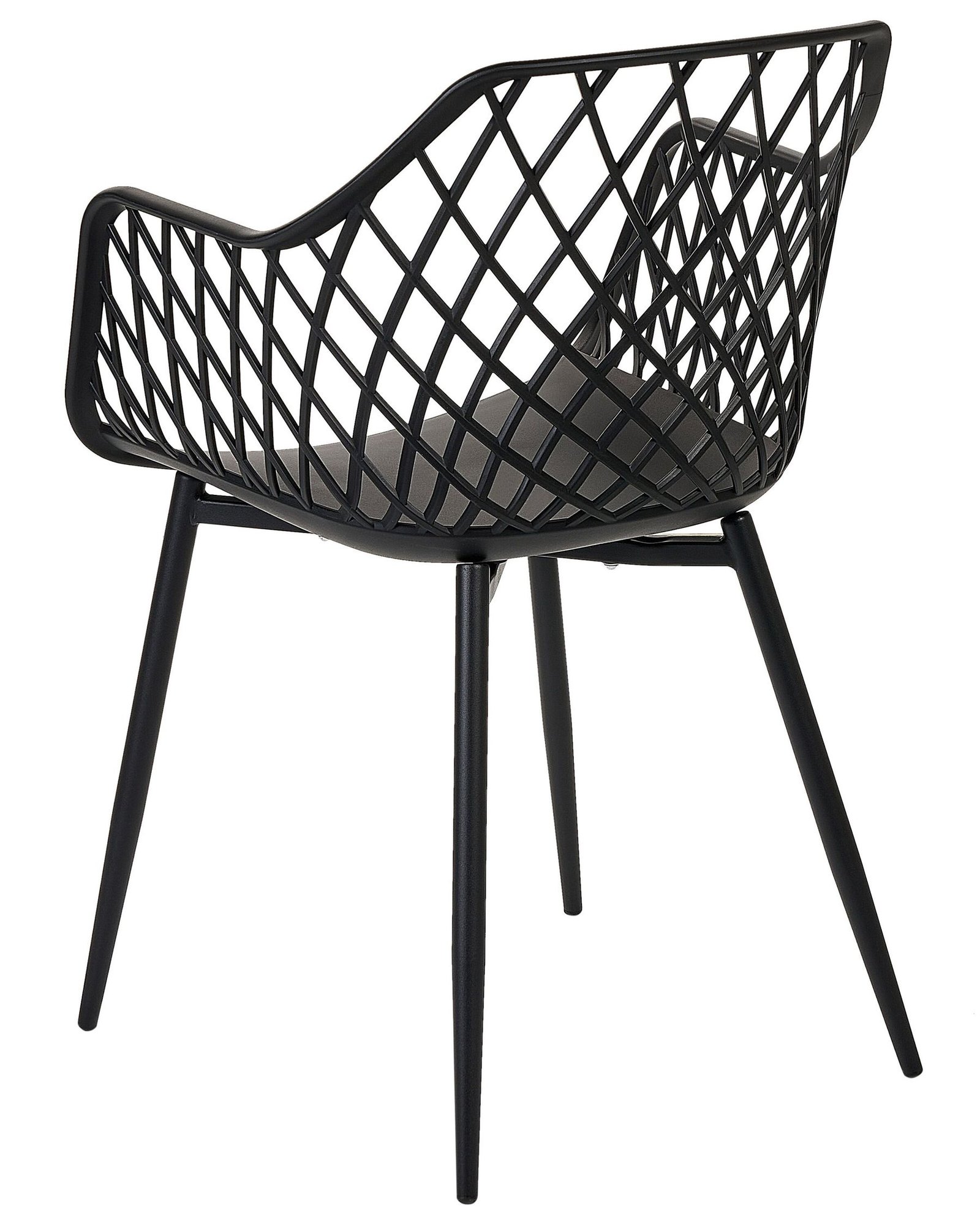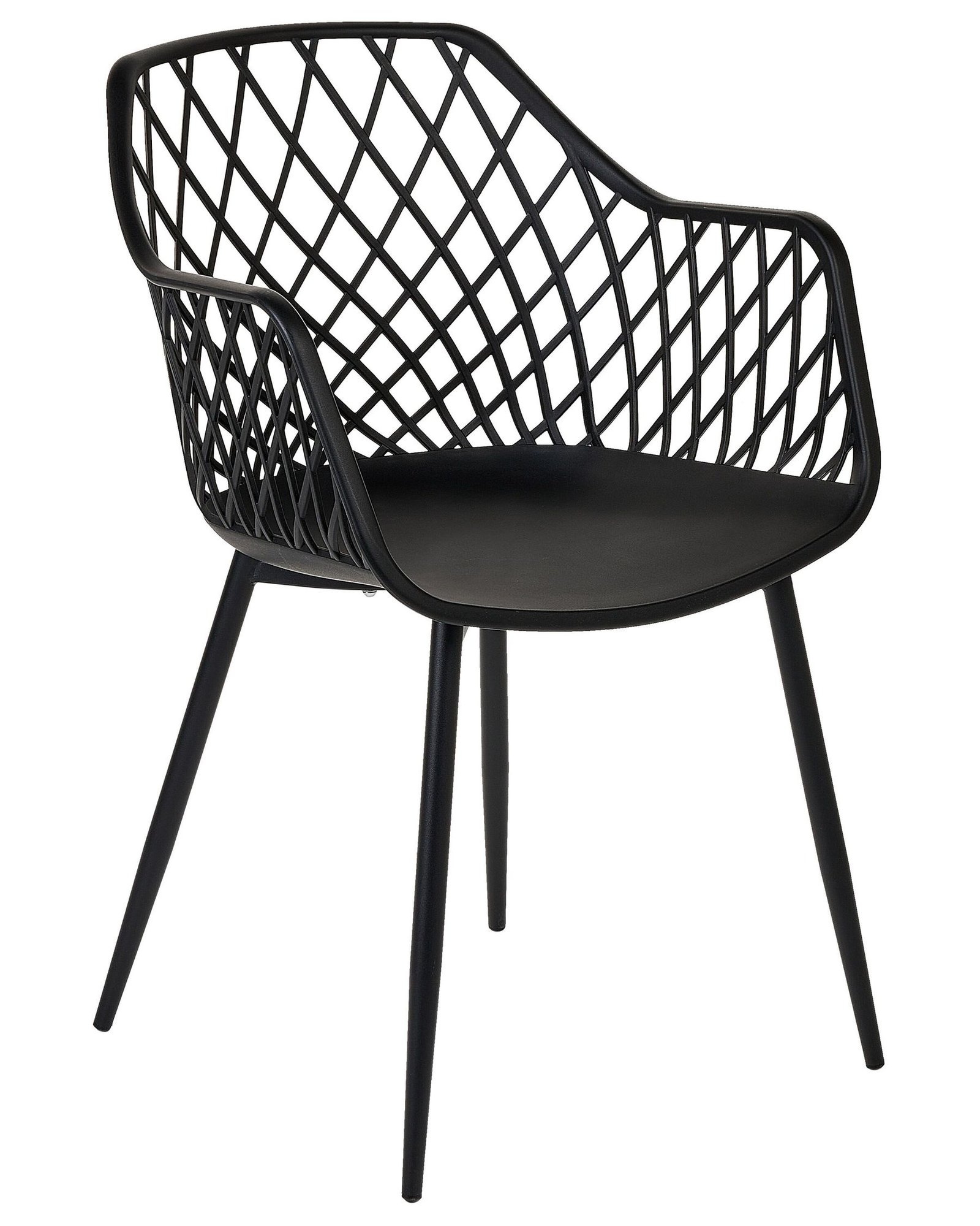 This set of chairs works wonderfully within any kitchen or dining room inspired by Scandinavian decor. The seat and the backrest are made from easy-care synthetic material, which retains its brand-new look for a long time. The modern net design is complemented by slender legs made from metal. Pair them up with a complementary table and enjoy dining in comfort.